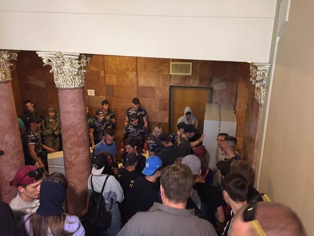 Напомним, во вторник, 30 мая, активисты «Сокола», нацкорпуса «Азов», Легиона «Cвобода», ОУН и «Правого сектора» пикетировали Львовский областной совет с требованием обратиться в Верховную Раду по амнистии для военных в АТО. Они выбили дверь, ворвались в сессионный зал из разных входов. Председатель совета объявил перерыв, однако радикалы не выпускали депутатов. Работу сессии приостановили.