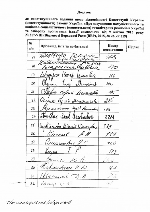 Став відомий повний список депутатів, які звернулися до КСУ із вимогою скасувати закон про декомунізацію