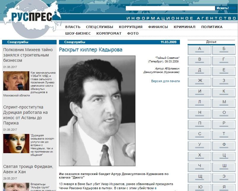 Российское издание "Руспрес" отмечает, что бывшего охранника Кадырова - Умара Исраилова, который обвинял президента Чечни Рамзана Кадырова в пытках, в 2009 году убили в Вене, где он просил политическое убежище.
