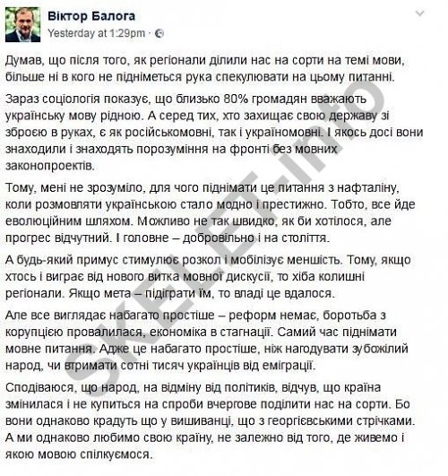 Видимо, после того, как Рыбчинскому удалось украинизировать коллектив, он взялся за страну. Иначе неизвестно, как оправдать законопроект №5670 «О языке», в котором медиаменеджер выступил соавтором. Документ, зарегистрированный в начале 2017 года, предусматривал тотальную украинизацию, где украинский язык хотели сделать обязательным в СМИ, в образовании и в магазинах. Законопроект под сомнение поставил народный депутат Виктор Балога (родом из Закарпатья, в быту говорит на украинском языке). По словам Балоги, по статистике 80% граждан считают украинский язык родным, «а среди тех, кто защищает свое государство с оружием в руках, является как русскоязычные, так и украиноязычные. И как-то до сих пор они находили и находят понимание на фронте без языковых законопроектов».