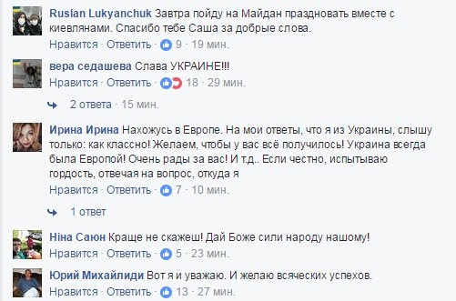 "А другого от народа, который сотворил Революцию Достоинства я и не ожидал. Как Украину можно не уважать?" - заключил он.