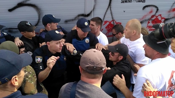 На його охорону підтягнулись поліцейські. Загалом на місце прибуло майже півсотні патрульних, які не давали активістам зруйнувати паркан, хоча той встановлений з порушенням законодавства. Поліцейські намагалися відтіснити мітингувальників й в результаті зчинилась бійка.