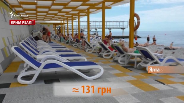 Массандровский пляж. Взять на прокат лежак можно за 300 рублей (131 гривна).Однако только до 18:00.