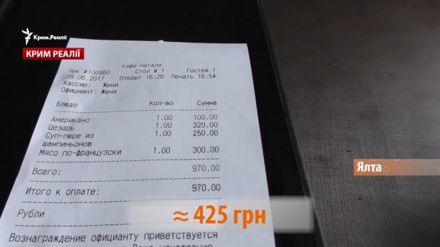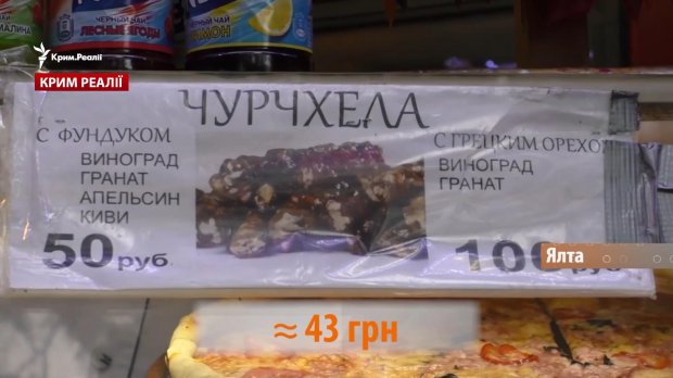 Ужин из салата и бокала крымского вина стоят 600 рублей (263 гривен). И чурчхела на десерт еще за 100 рублей (43 гривен).