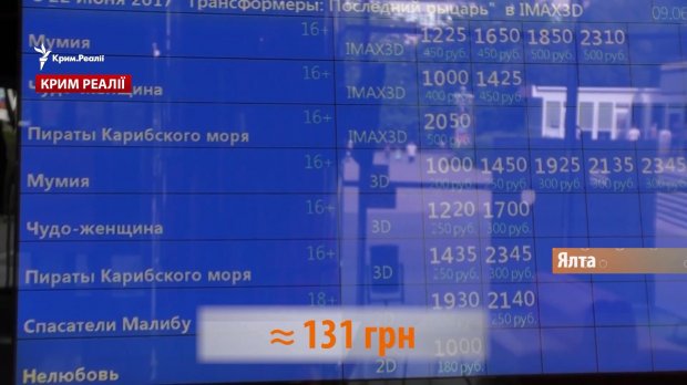 В кинотеатре вечерний сеанс в 3D стоит 300 рублей (131 гривна). IMAX – 450-500рублей (200-220 гривен).