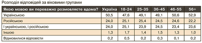 Вместе с тем, 50,5% населения Украины используют украинский язык в качестве основного языка повседневного общения. Согласно результатам исследования, больше всего украинцев, говорящих преимущественно на украинском языке, проживает на западе (97,2%) и юго-западе (91,6%) страны.