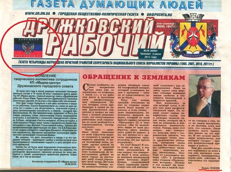 На фото: Бывшего главного редактора «Дружковского рабочего» Бориса Южика, который публиковал призывы к отделению Донбасса от Украины, все никак не могут осудить, но в газете он сейчас не работает.