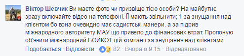 Пользователей сети данная история возмутила, они заявили, что работницу МАУ необходимо найти в соцсетях, "прославить" на всю Украину, а затем уволить.