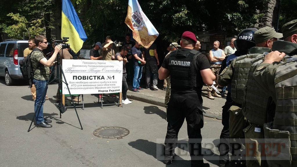 Отмечается, что "айдаровцы" пришли под АП с пикетом и хотели установить палатку. Бойцы протестуют в связи с тем, что, по их словам, правоохранительные органы обвиняют их в терроризме.