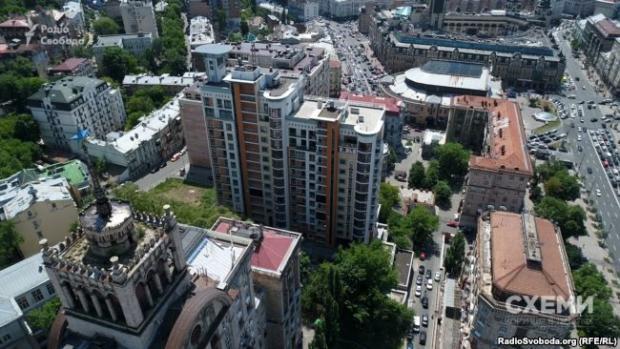За останні півстоліття – це чи не єдиний новий будинок, зведений на центральній вулиці столиці і з якого відкривається чудовий вигляд на місто. У часи будівництва експерти визнавали його найдорожчим у Києві. А на сайтах продажу нерухомості ціни на квартири на верхніх поверхах зараз можуть сягати трьох мільйонів доларів.