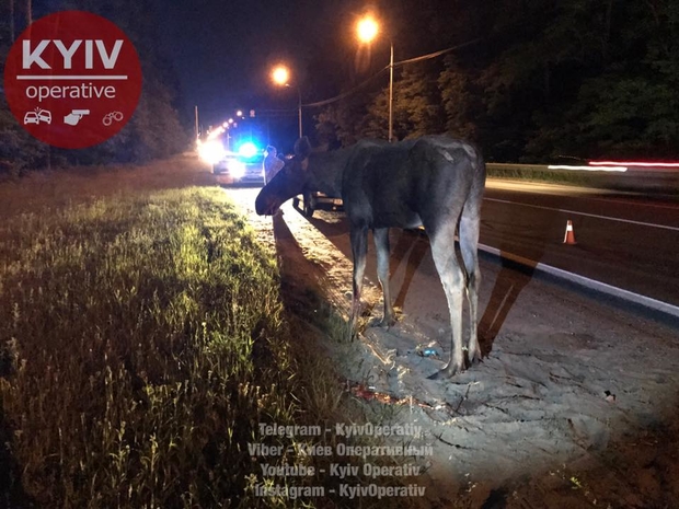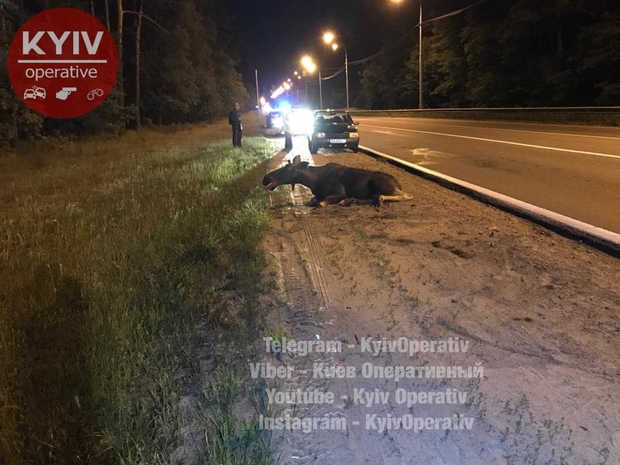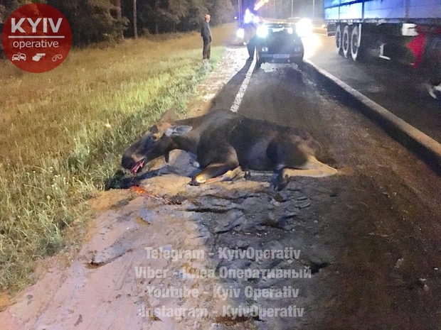 На трассе под Киевом случилось дорожно-транспортное происшествие, в результате которого погиб лось.