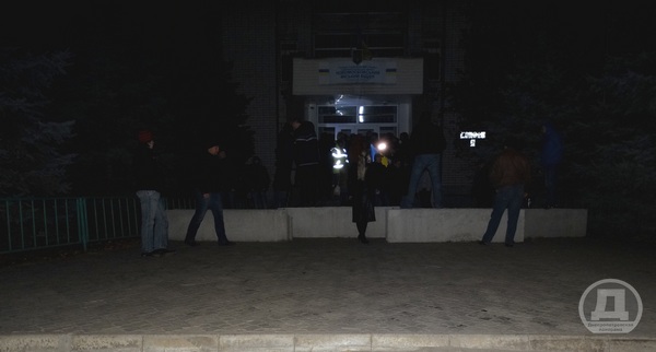 Вчера ночью под избирательным округом №38 состоялась акция протеста. Журналисты отчаянно пытались попасть в здание округа, которое располагалось в Новомосковском горсовете, но им в таком праве было отказано. К слову, по перимертру безмолвно наблюдали за процессом неизвестные в комуфляже. балаклавах и с автоматами. Руководствуясь правом на возможность беспрепятственной журналистской деятельности, была осуществлена неоднократная попытка вызова милиции, но тщетная: линии были недоступны. К счастью, отделение милиции оказалось буквально за углом, куда и направились активисты.