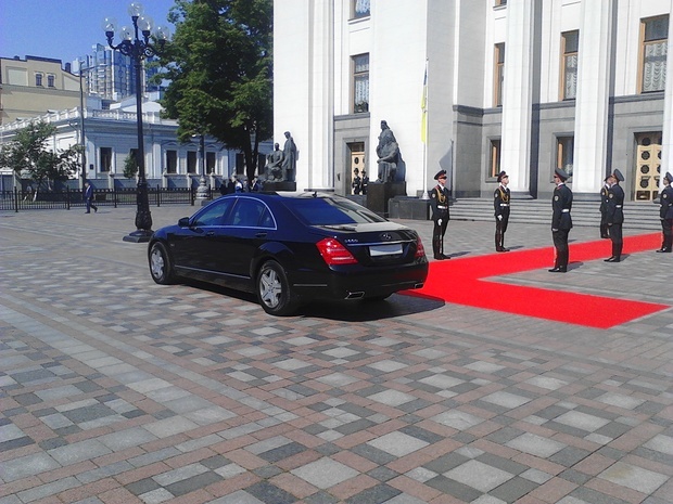 Но давайте посмотрим, на чем ездит украинский президент Петр Порошенко. На инаугурацию он приехал на черном Mercedes S-600.