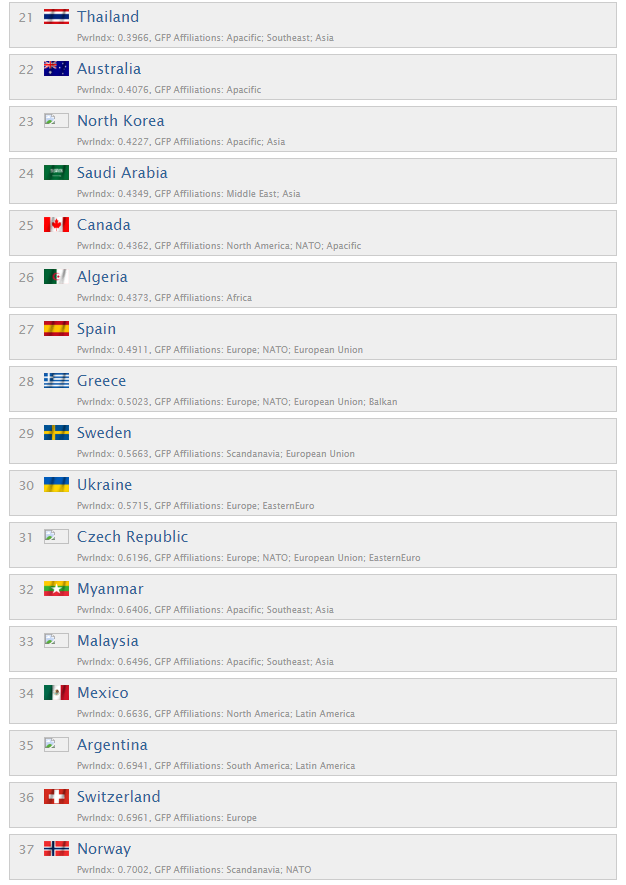Авторы рейтинга сравнили военную мощность разных стран путем сложной аналитики, которая учитывает 50 различных фактором.