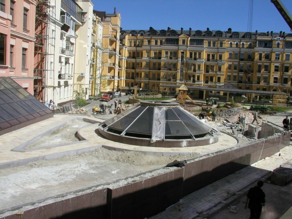 Тогда же киевляне забили тревогу, о стройке сообщили в ЮНЕСКО. В Киев приехали представители этой организации, и им было обещано, что котлованы сравняют с землей и строить ничего не будут, т.к. ВСЕ ПОНИМАЮТ, что строительство угрожает сохранности памятника всемирного значения. Президент Кучма дал указание прекратить строительство. Представители ЮНЕСКО уехали, а строительство продолжилось и было завершено в том виде, как планировали.