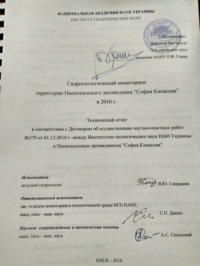 Об аномальных подъемах уровня грунтовых вод из-за работы фитнес-центра «Софиевский» (скв. 11). Из отчета о работе за 2016 г. Института геологических наук НАН Украины