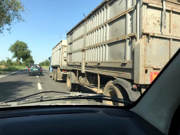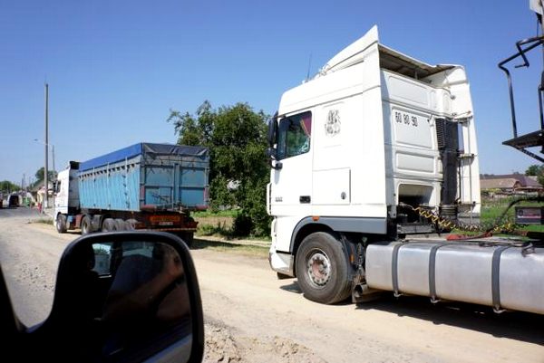Основное впечатление от движения на трассе — засилие на всем направлении тяжело перегруженными, сверх всяких законных норм, авто-зерновозами. Редко можно проехать один километр без встречи с вереницами этих тяжко загруженных мастодонтов. Да, ни одного государственного контрольного весового комплекса для ограничения движения перегруженных машин, на этой «трассе в Европу» нет. В обоих направлениях нет.