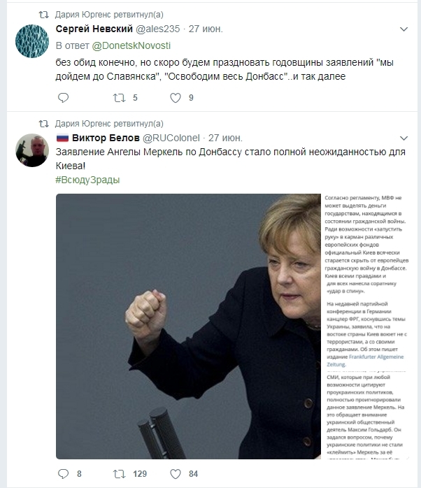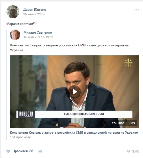 Также Юргенс оправдывала российскую агрессию, поддерживала боевиков на Донбассе.