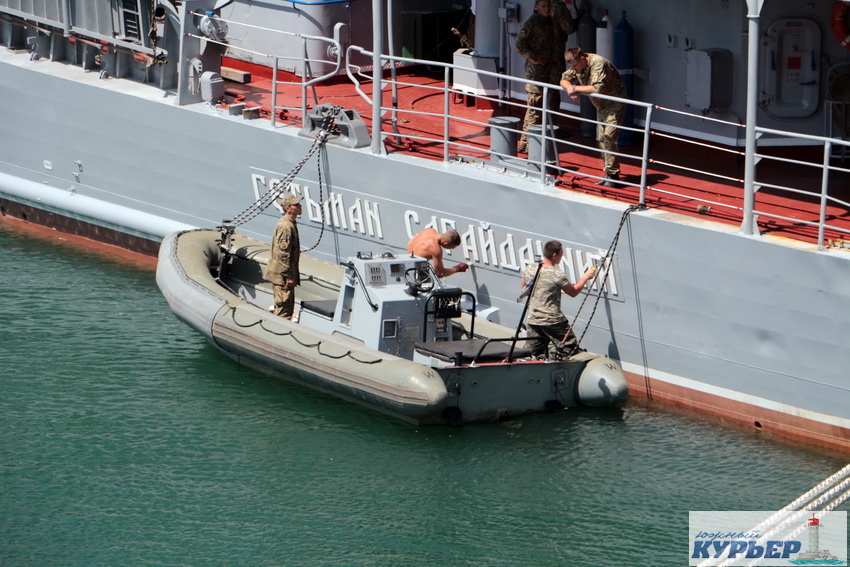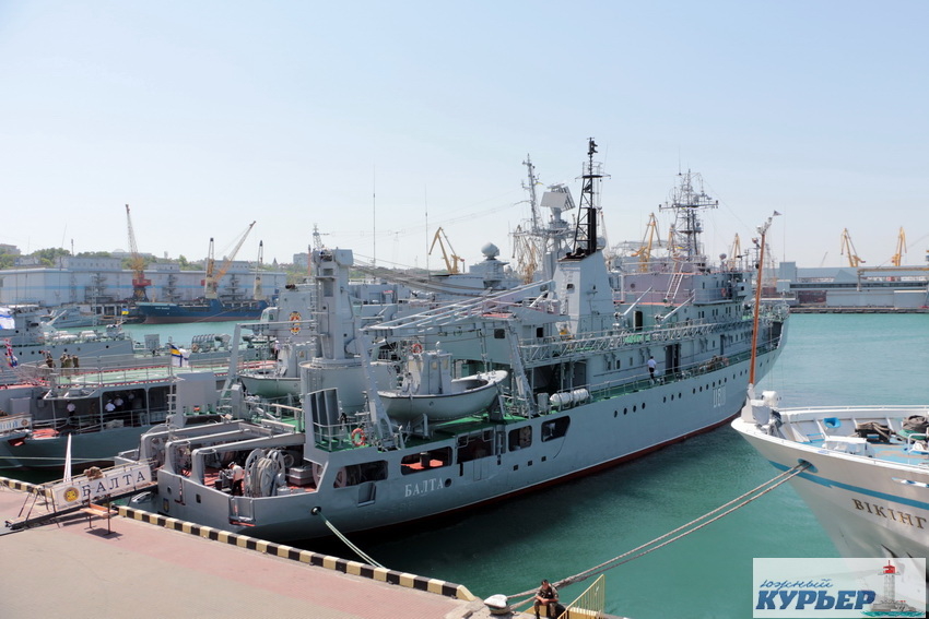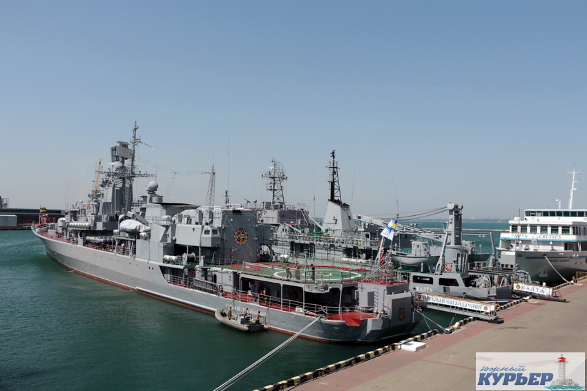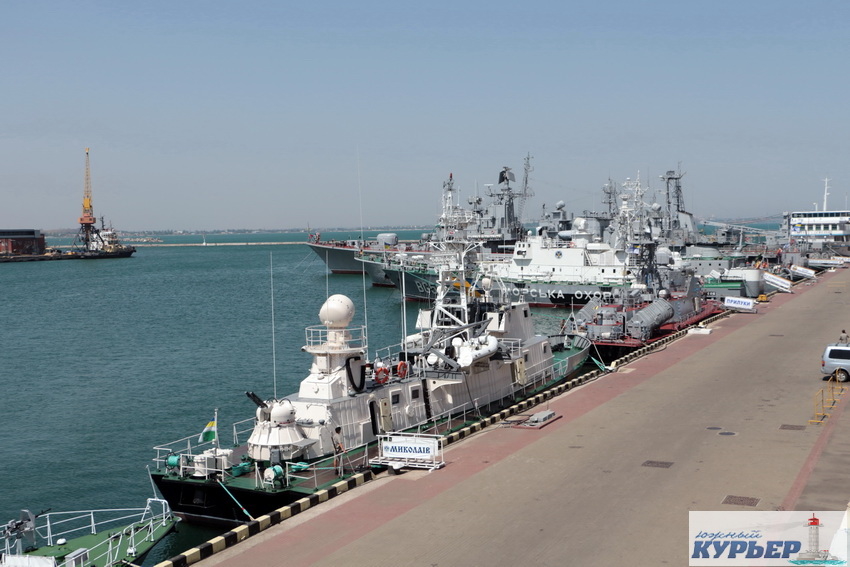 Во главе эскадры - фрегат "Гетман Сагайдачный". Это самый крупный корабль, способный выполнять задачи в открытом море. Также представлен средний десантный корабль "Юрий Олефиренко" (бывший "Кировоград"), ракетный катер "Прилуки", новейший бронекатер "Аккерман", учебный катер "Почаев", артиллерийский катер "Скадовск" и санитарный катер "Сокаль".