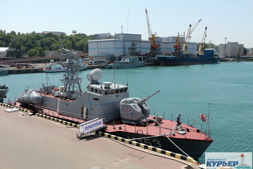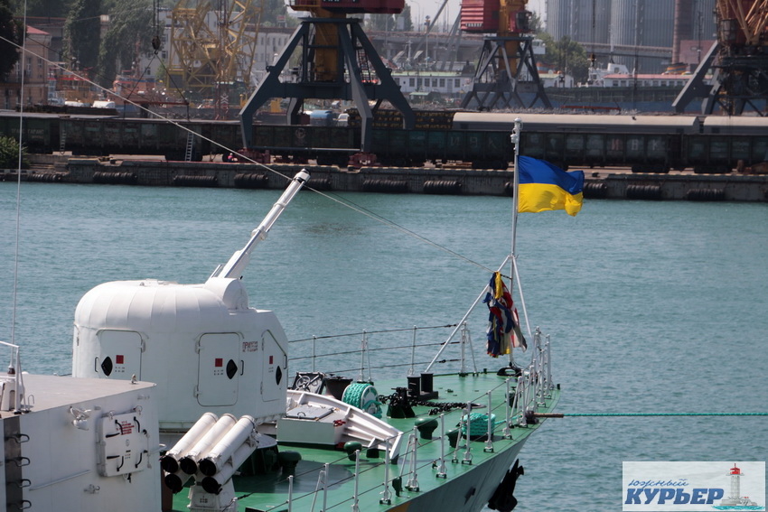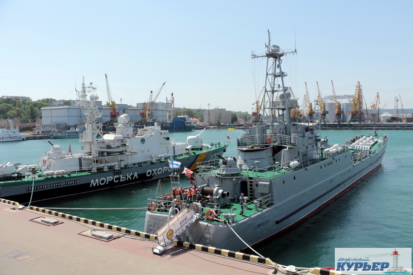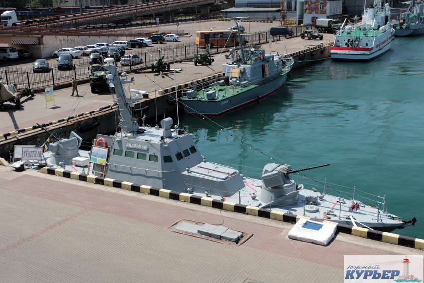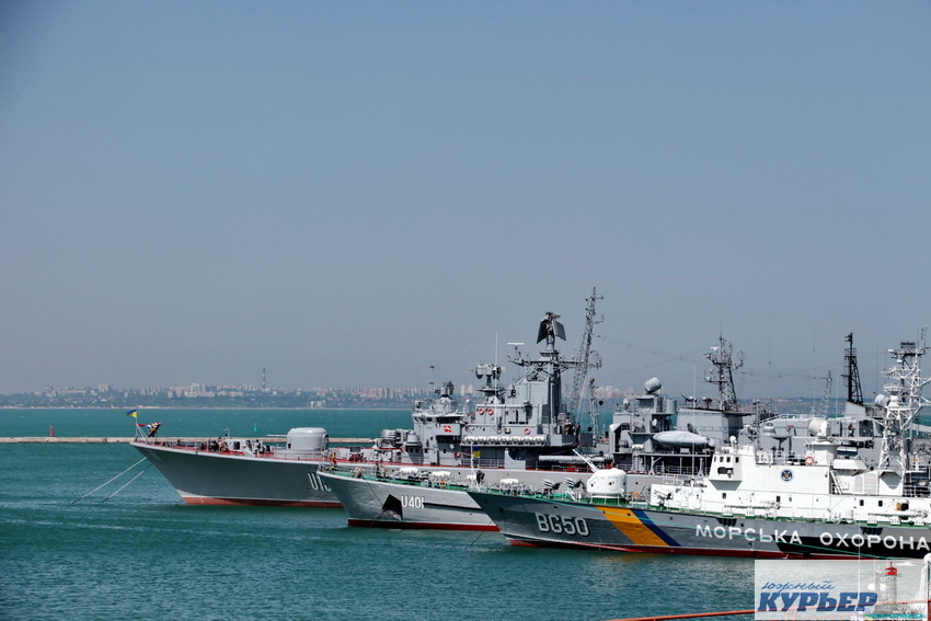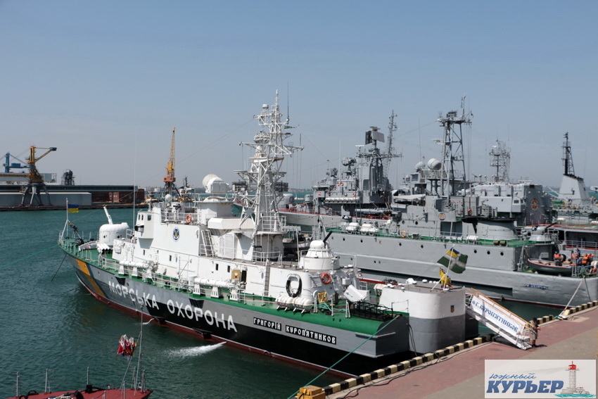 Накануне дня флота у Одесского морского вокзала выстроились боевые корабли Военно-морских сил Украины и морской пограничной службы.