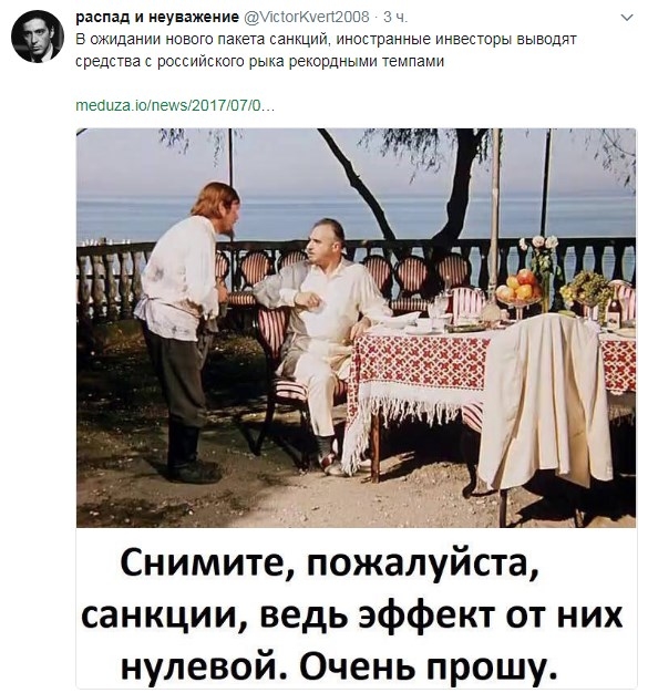 Комментаторы в Twitter, в свою очередь, припомнили российской власти заявления о "бесполезности" санкций против РФ.