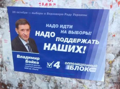 В предвыборной агитации участвовали и политики прошлого. Например, в Мариуполе с плакатов проголосовать за «Оппозиционный блок» призывал экс-директор меткомбината им. Ильича Владимир Бойко. В середине нулевых он на своих плечах едва не втащил в парламент Соцпартию Александра Мороза. Сейчас его завод принадлежит группе «Метинвест» Рината Ахметова – одного из трех «акционеров» новой политсилы. Регионы присутствия «Метинвеста» стали электоральной базой для бывших регионалов.