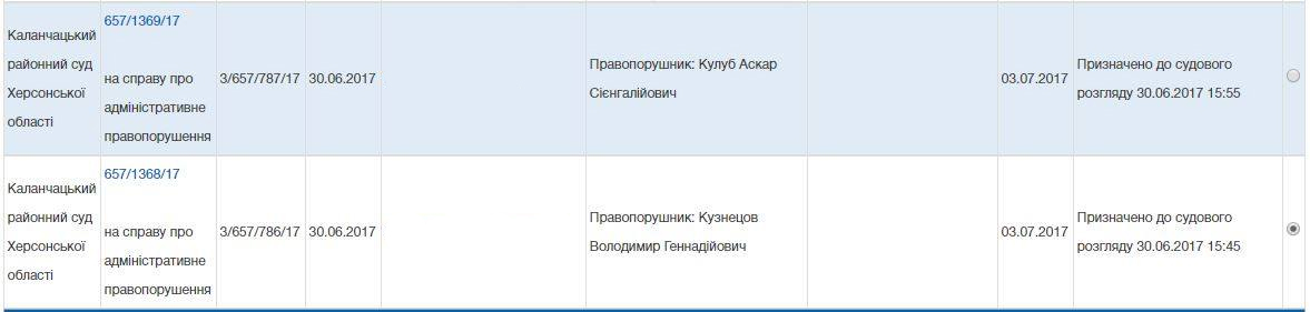 Сегодня в Едином государственном Реестре судебных решений Украины появились записи о постановлениях суда в отношении задержанных 30 июня сотрудниках ФСБ России (дело № 657/1368/17, № 657/1369/17 ).