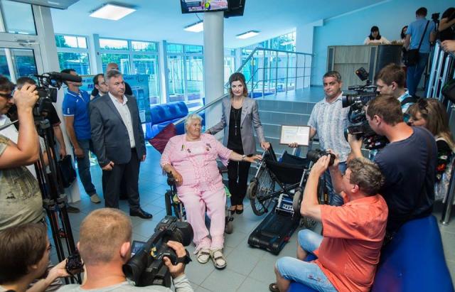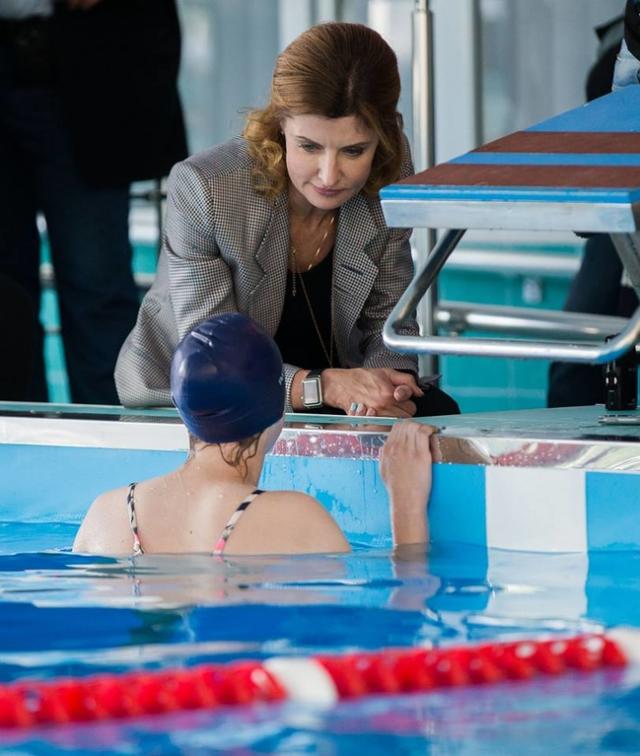 Супруга президента Украины Марина Порошенко посетила Луганскую область, где во время визита встретилась со спортсменами-колясочниками Луганской ДЮСШ для лиц с ограниченными возможностями в городе Кременная.