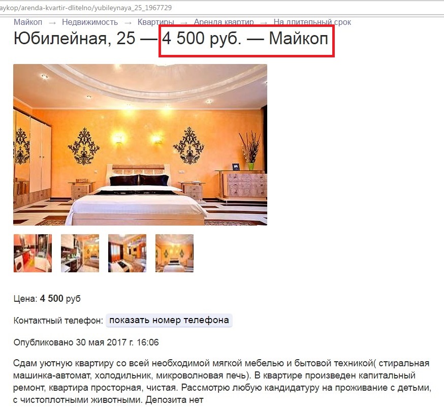 • в какой бы день вы не искали объявления – аферисты разместят объявление сегодняшним днем, чтобы оно было наиболее свежим. В дальнейшем такие объявления удаляются, поэтому не удивляйтесь, если после уплаты залоговой суммы через некоторое время прочтете по ссылке объявления, которую вы сохранили: «Извините, но данное объявление больше недоступно».
