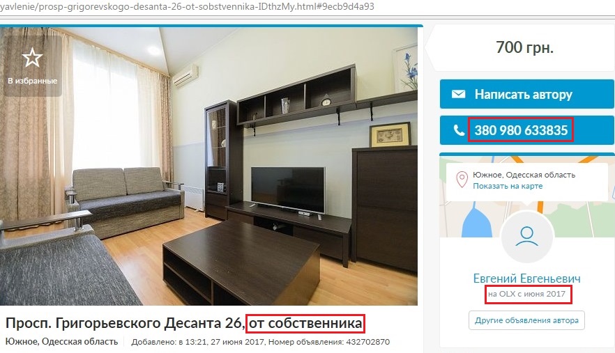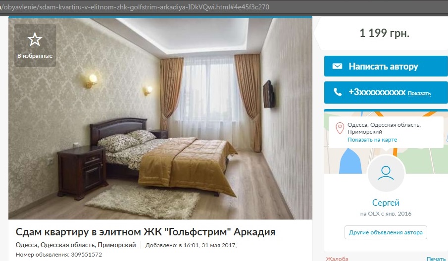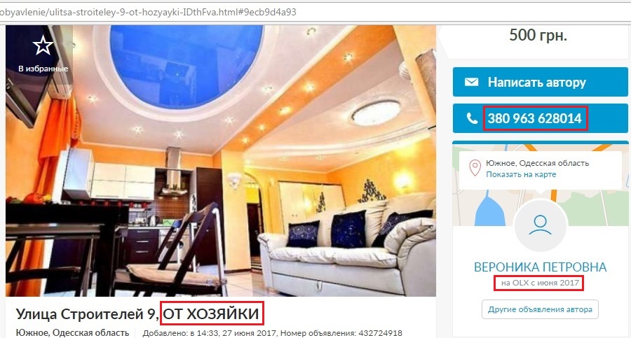 На самой большой доске объявлений Украины OLX.ua мошенники сдают в аренду несуществующее жилье. Речь идет о посуточной аренде квартир в курортных городах на юге Украины. Такие грабительские объявления – не единичны, и среди огромной базы предложений они размещены на первых страницах. Вы их увидите как опубликованные сегодня, а на следующий день ссылки уже будут удалены. Большое количество таких объявлений по аренде квартир в городе Южный Одесской области и Бердянске Запорожской области.