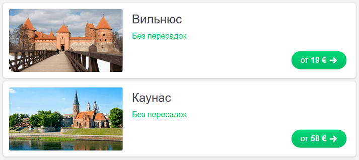 Очень важный рейс лоукостера в Вильнюс. Здесь всегда много бюджетных дат, а рейсы из Вильнюса — по всей Европе.
