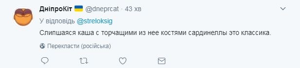Выложил фотографию пользователь Twitter под ником "Стрелок сигарет". На снимке – не слишком аппетитная тарелка каши, в которую, судя по всему, вывалено содержимое рыбной консервы.