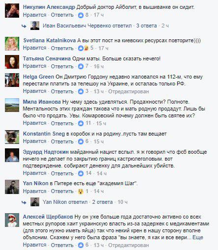 Пользователи сразу отреагировали на такой поступок Комаровского. Некоторые намекают на то, что он неоднократно жаловался на низкий заработок от украинских эфиров, другие – напомнили ему о громких заявлениях относительно отечественной медицины и совсем не удивляются такому повороту событий.