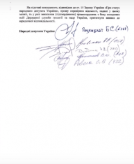 Також на відео видно один з офіційних документів, який підписали декілька народних депутатів.