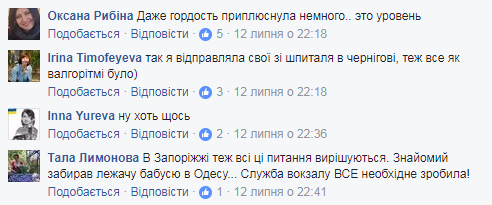 Вона зазначила, що бабусю дійсно посадили у купе – провідника і начальника поїзда попередньо попередили. А в самій Дружківці поїзд протягнули так, щоб останній вагон був на пероні, і щоб жінку було зручно й безпечно знімати з вагона.