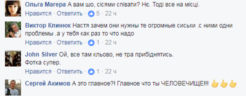 Впрочем большинство поклонников певицы принялись делать комплименты Приходько и писать, что они любят ее "не за это".