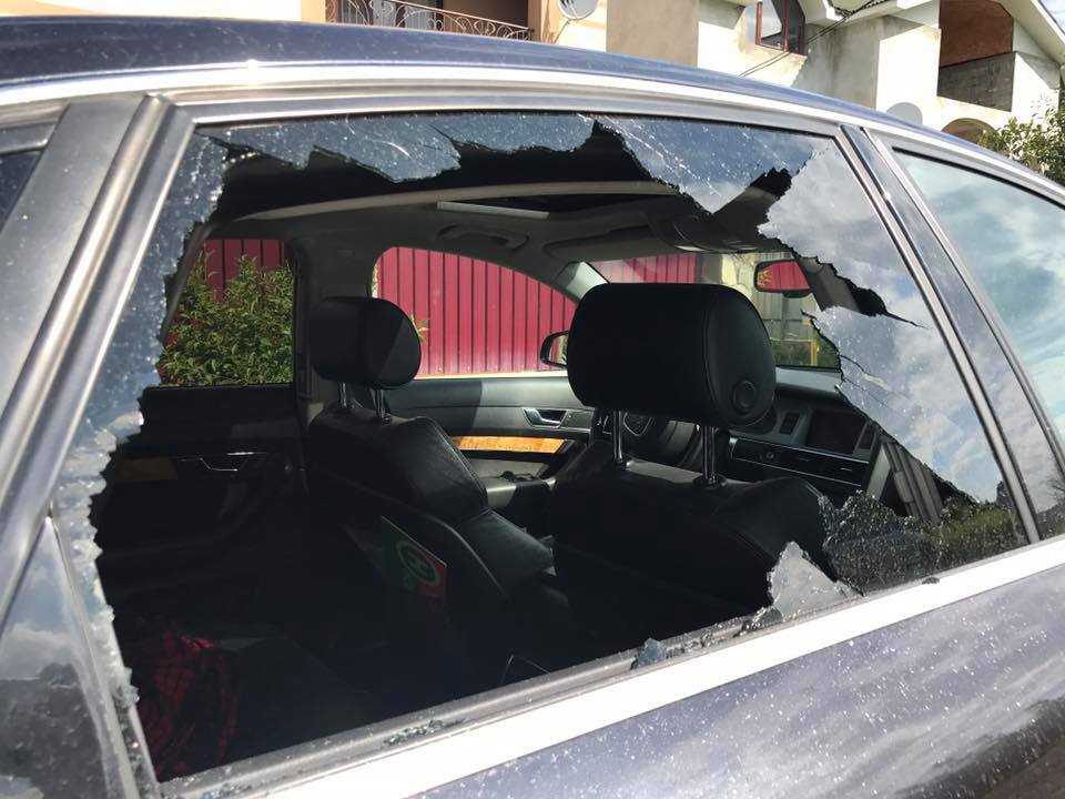 Судя по опубликованным фотографиям, неизвестные бросили в автомобиль журналиста AudiA6 крупный камень, разбив стекло в правой пассажирской двери.