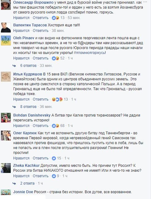 15 июля 1410 года русские князья Ягайло и Витовт под русскими поселениями Грюнвальд и Танненберг наголову разбили немецко-бандеровские войска Тевтонского ордена под командыванием Великого Магистра Ульриха фон Юнгингена. Россия помнит свои победы!. – отметили с иронией в паблике «Роисcя 24».