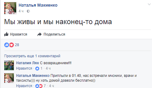 "Мы живы и мы наконец-то дома", - написала она.