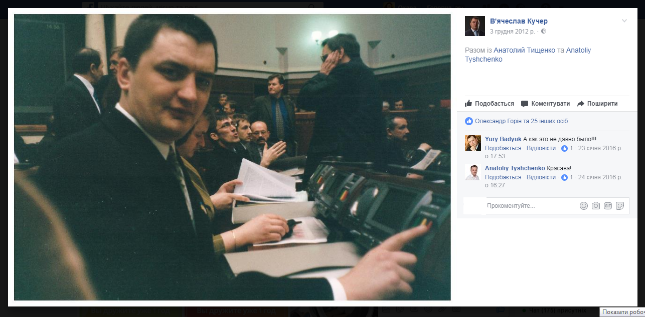 К слову, новый начальник управления персоналом КОГА Анатолий Тищенко является старым знакомым главы аппарата администрации Вячеслава Кучера, зашедшего в стены админздания на пл.Леси Украинки, 1 в январе этого года. Так, у последнего на странице в facebook 5 лет назад было опубликовано общее с Анатолием Тищенко фото.