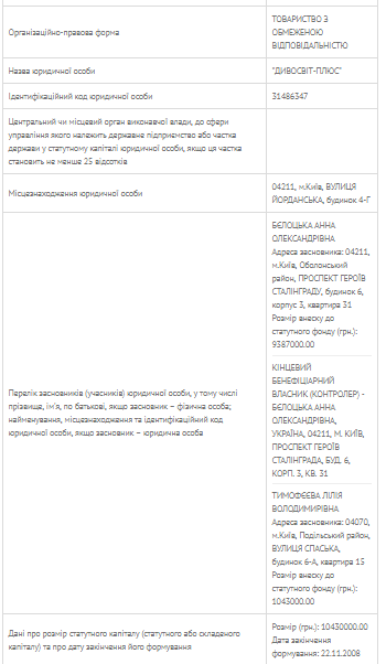 Согласно данным Госреестра, сегодня Сергей Тимофеев среди учредителей ООО “Дивосвіт-Плюс” не числится, но сюда входит его супруга Лилия Владимировна Тимофеева.