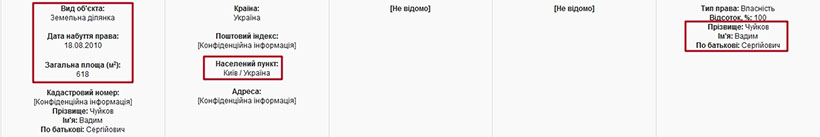 Також у власності  Вадима Чуйкова  перебуває 6 соток землі у Києві. Ще 11 соток землі є у власності дружини прокурора у с. Вороньківка, Вишгородського району.  Однак через відсутність цих ділянок у реєстрі нерухомого майна ідентифікувати їхнє розташування нам не вдалося.