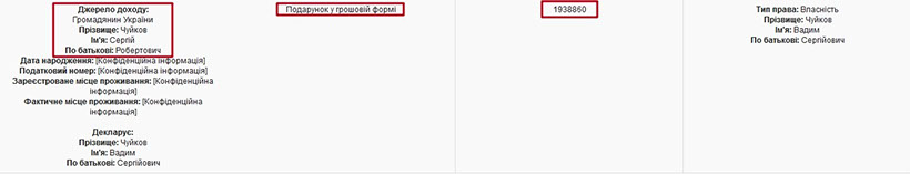 У своїх деклараціях за 2015 та 2016 роки прокурор Вадим Чуйков та його дружина задекларували лише 267 тис. грн. заробітної плати та 1,6 млн. грн. від продажу майна. Також у 2016 році прокурор отримав від свого батька подарунок у грошовій формі – 1,9 млн.грн.