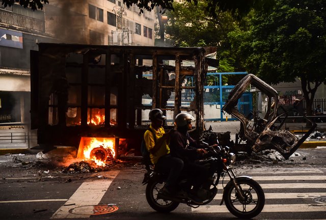Беспорядки в Венесуэле вспыхнули с новой силой, пишет AFP. Митингующие вышли на улицы, где жгли машины, магазины и бросали "коктейли Молотова".