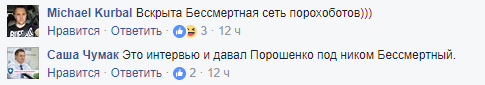 "Это интервью и давал Порошенко под ником Бессмертный", – резюмировал Саша Чумак.