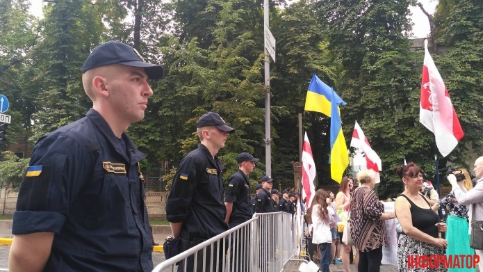Вони вийшли на акцію під біло-червоно-білими і українськими прапорами, – повідомляє кореспондент ІНФОРМАТОРа з місця подій.