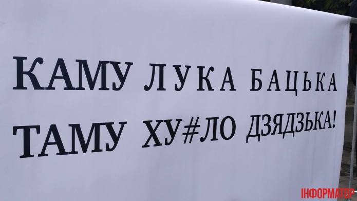 Учасники пікету тримають також плакати з портретами російського президента Володимира Путіна і Олександра Лукашенка з підписом “Два чоботи пара”.