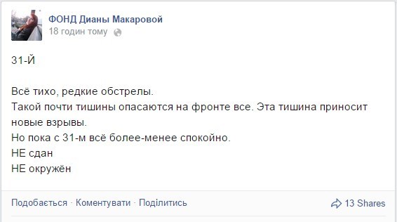 Ранее Фонд Дианы Макаровой, оказывающей помошь 32 блокпосту до его выхода из окружения, сообщал, что 31 блокпост не окружен.