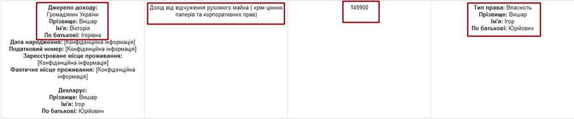 "Проанализировав декларации судьи за 2014, 2015, 2016 годы мы видим, что основным доходом Игоря Вышар является судейская заработная плата. Еще 149 тысяч грн он получил от продажи Volkswagen Tiguan 2013 выпуска. Интересно, что продал он данный автомобиль своей дочери Вышар Виктории Игоревне", - говорится в расследовании.