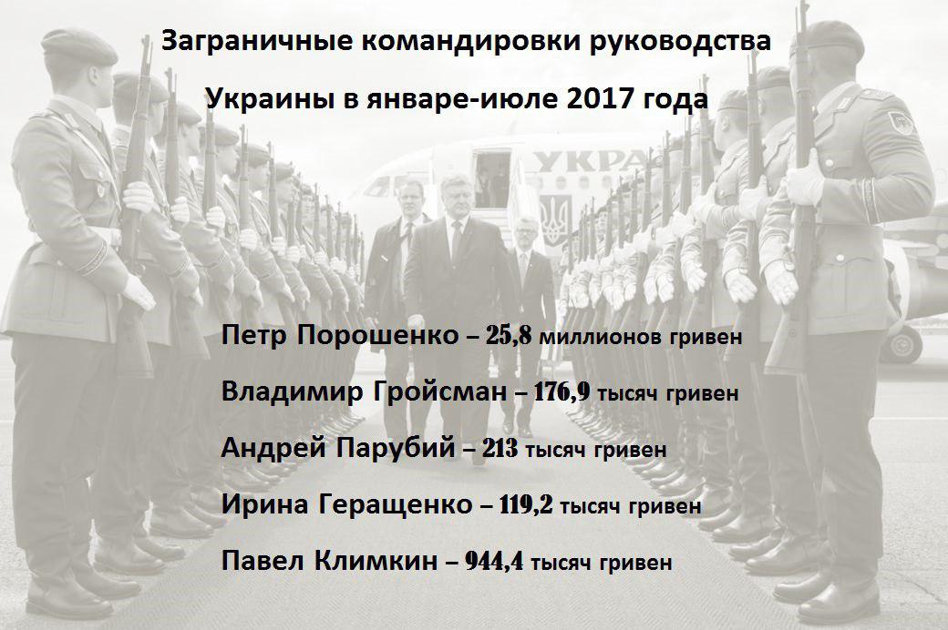 Расходы из госбюджета на заграничные поездки руководства Украины в 2017 году